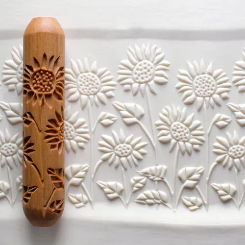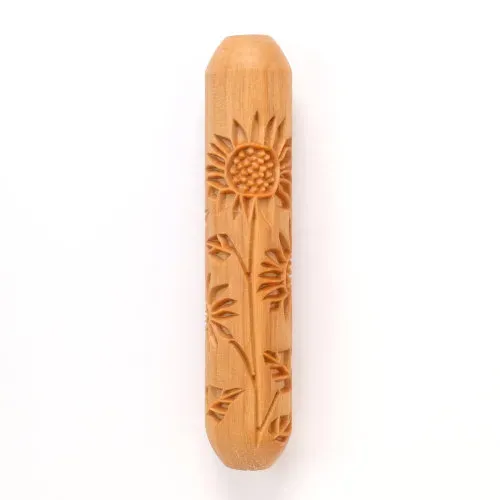 Je rolt de roller eenvoudig met je hand over de klei of tegen de wand van een pot om een patroon in de klei te maken.