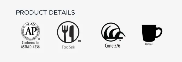 Dit glazuur presteert het best bij cone 5, maar kan worden gestookt tot cone 6.
