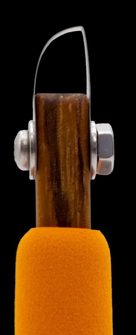 Dit gereedschap heeft een gebogen, koepelvormig roestvrijstalen blad van 6 mm. Het is voorzien van een hardhouten handvat in potloodvorm van 140 mm (5,5 inch) en is ideaal voor het verwijderen van materiaal op moeilijk bereikbare plekken. Het biedt goede controle over de snijdiepte voor nauwkeurig lijnwerk en werkt het beste op leerharde tot gortdroge klei. De bladhoek is verstelbaar en vervangingsbladen zijn apart verkrijgbaar. De houtnerf kan variëren.