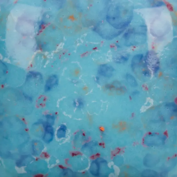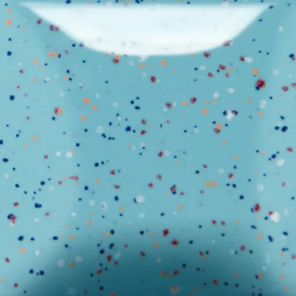 Tic-Tac-Turquoise is een sterk gepigmenteerde, viskeuze Stroke & Coat®-glazuur met witte, blauwe, oranje en rode spikkels die kan worden gebruikt voor penseelstreken of dekkende lagen. Eén laag zorgt voor een doorschijnende afwerking, terwijl volgende lagen voor meer dekking zorgen. Wij raden twee tot drie lagen aan voor volledige dekking en een volledig dekkend resultaat. Na het bakken ontstaat een glanzende afwerking zonder heldere glazuurlaag.